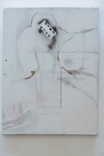 My first thought when I had a look at his work for the first time was that it kind of reminded me some of Basquiat’s works. Regarding a purely analytical point of view Peter’s ones are kind of messy; characters and unidentified shadows wander on the canvas without any clue of space or time; red, brown, black are the main colors used; there is no particular light source; one doesn’t know where and when scenes take place. No foreground or background. Also words, numbers, and everyday life objects complete this apocalyptic vision. Apocalyptic because subjects are often linked to religion and mysticism. One of my favorite works figures Jesus Christ standing right in the middle of the canvas.