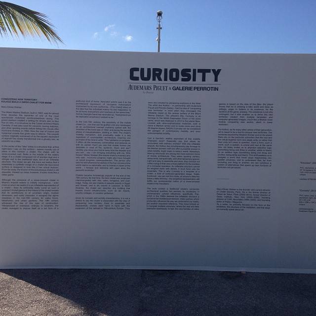 “Curiosity” takes the form of a chalet floating in front of the Miami Marine Stadium. The snowy chalet is perched on top of an “iceberg” in the midst of Miami’s sun and sand. The installation will host Audemars Piguet events throughout the week. The brand also has a booth in the Collectors’ Lounge, which features a retrospective on the Royal Oak and a showcase of works by acclaimed British photographer Dan Holdsworth.