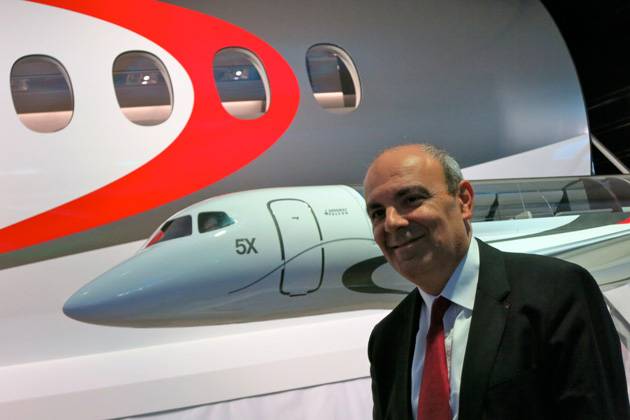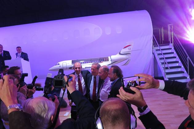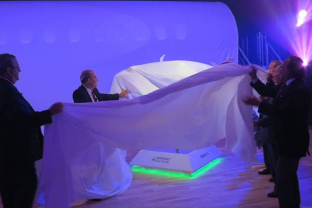 The aircraft was introduced by Dassault Aviation’s new Chairman, Eric Trappier. On hand to help with the unveiling of the scale model was former Chairman, Charles Edelstenne, and Serge Dassault, son of the company’s founder, Marcel Dassault.