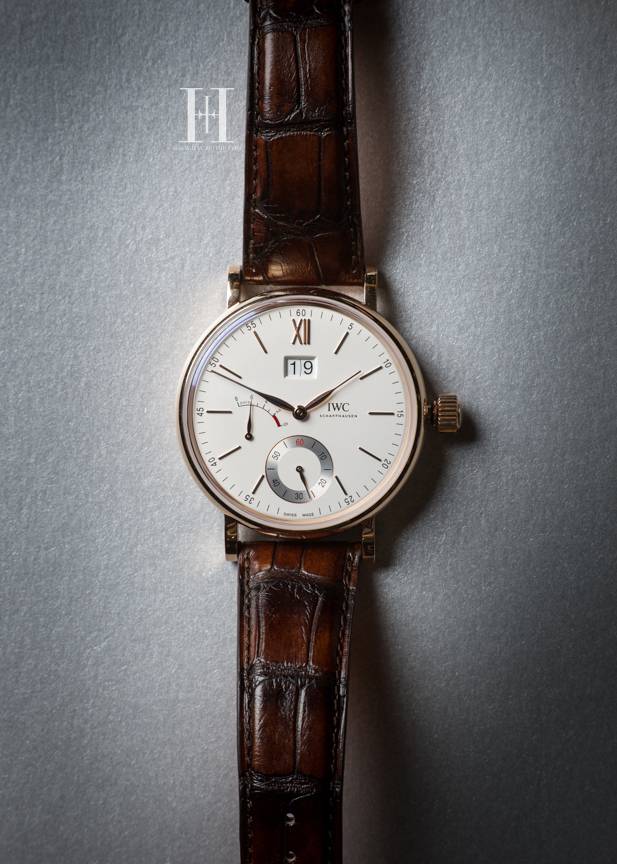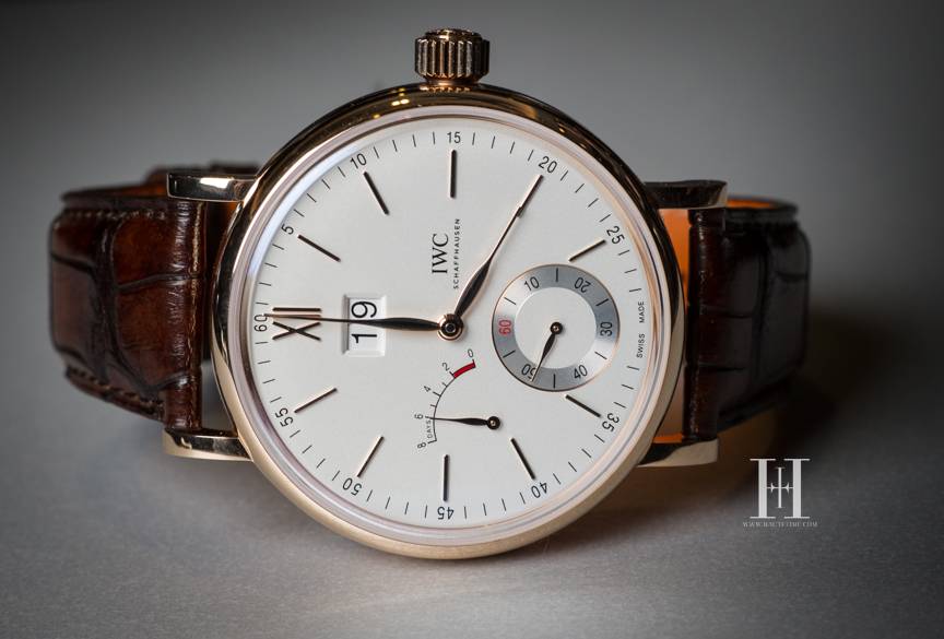 This 45mm red gold timepiece features a big date display, the first in the Portofino watch family. The dial also features a power reserve display and a separate small hacking seconds sub-dial.