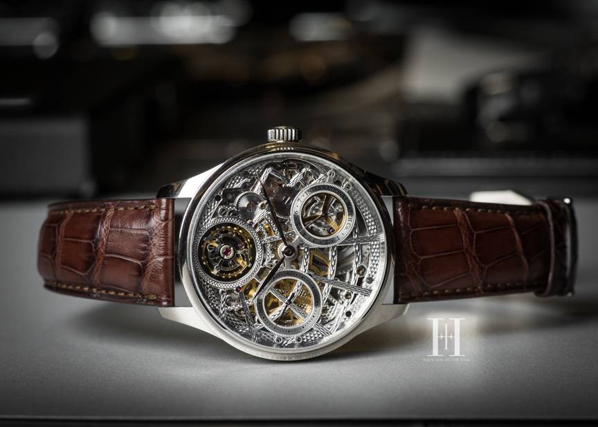This 44.2mm timepiece literally made our jaws drop, as it’s very rare to see a skeleton watch from IWC! True to its name, this piece combines a tourbillon with the traditional craftsman’s arts of skeletonising, engine-turning and engraving. Only 50 pieces of the white gold version pictured here were produced.