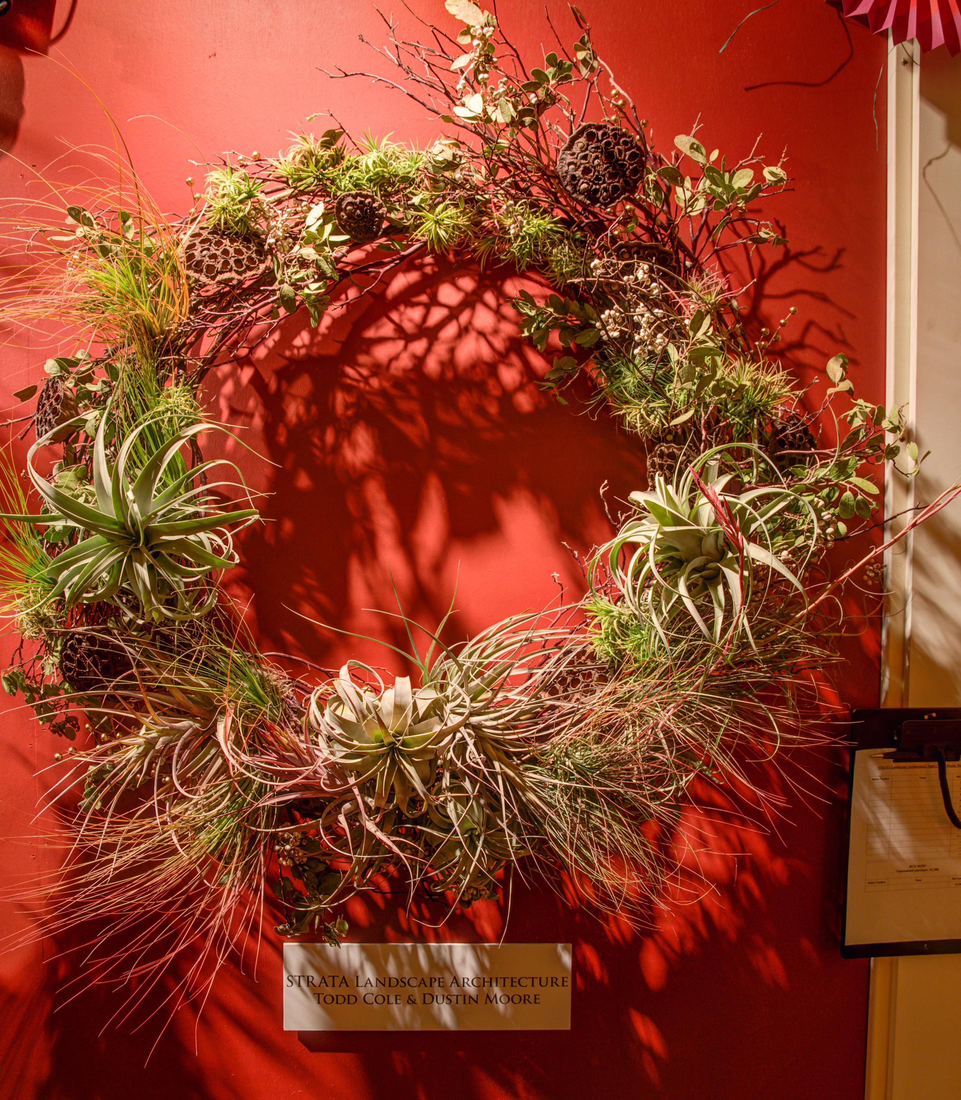 Each year, this event is considered to be one of the most unique and festive fundraisers of the season, bringing out socialites, local celebrities and the fashionable set alike. This year’s auction featured designer wreaths by Restoration Hardware, Ken Fulk, Adam P. Gale, Kendall Wilkinson, Douglas Durkin Design, Catherine Macfee Interior Design and many more. In the past, designers have flexed their creative muscles to create art made from live foliage and steel to mirrors and colorful light installations.