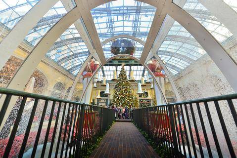 The centerpiece of the exhibit is Las Vegas’ largest indoor holiday tree, a 42-foot tall, 18-foot wide and 6,800-pound majestic White Fir handpicked from Mt. Shasta, Calif. Sparkling with 7,000 warm white LED lights and 2,500 richly colored ornaments, the extravagant tree presents a perfect photo opportunity to capture precious holiday memories.