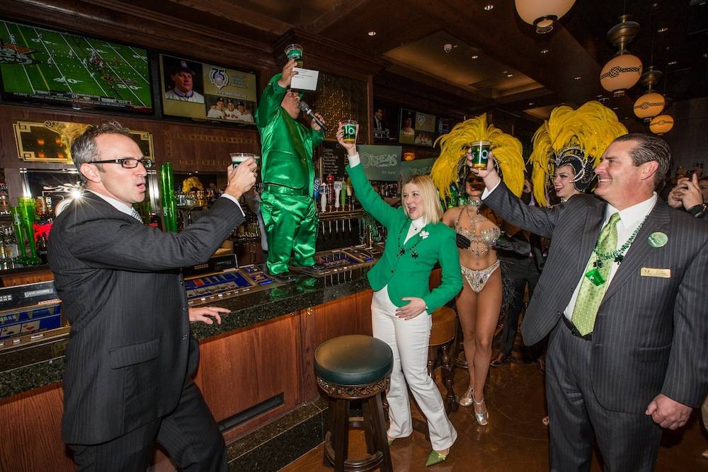 O’Sheas re-opened its doors on Friday at its much-anticipated new location inside The Quad. Bally’s Las Vegas Jubilee! Showgirls, the Quad’s headliner, Jeff Civillico, and Mr. Lucky himself, Brian Thomas, were all there to help welcome the venue’s first guests.