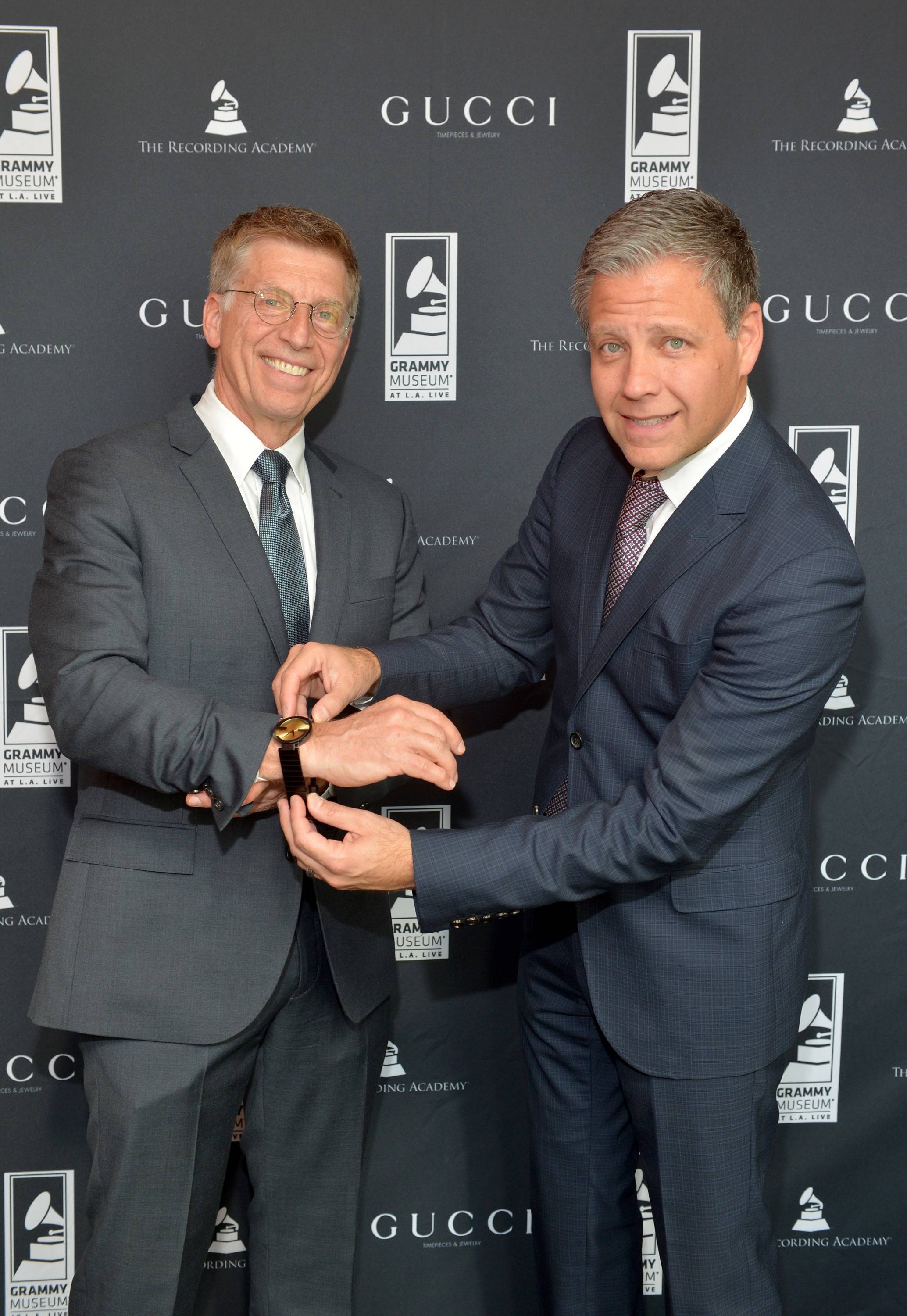 The event was held to present the new Gucci Grammy Interlocking watch with a dial made of Grammium, which is the same material used to forge the actual Grammy statuette.
