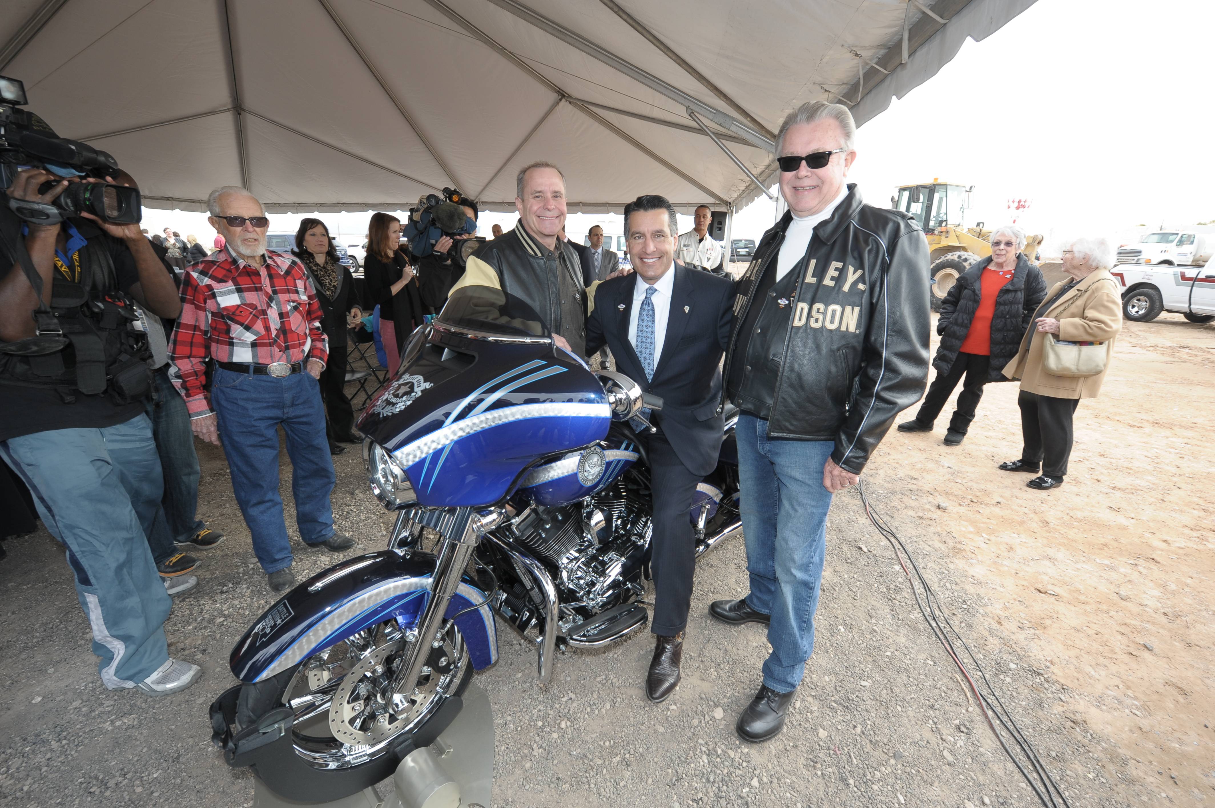 The groundbreaking event welcomed Harley-Davidson owners from around the city as Las Vegas Harley-Davidson president Don Andress and vice president Timothy Cashman discussed the new location and along with Gov. Brian Sandoval, unveiled a custom Nevada Sesquicentennial-themed motorcycle. Gov. Sandoval signed the bike shortly after its reveal.