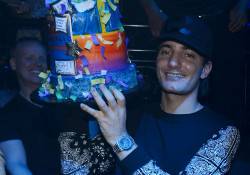 After his set, Alesso and friends partied at an exclusive dance floor table. Later, the nightclub presented him with a custom cake to celebrate his 2014 Grammy Award nomination and thank him for an amazing year.