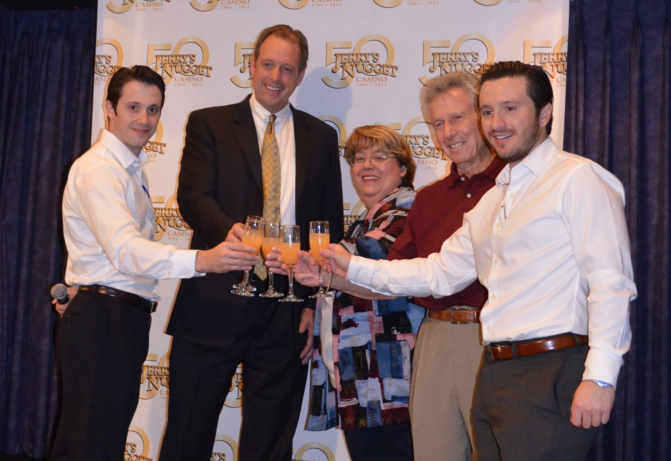 In celebration of the milestone 50th anniversary this year, North Las Vegas Mayor John J. Lee presented Jerry’s Nugget Casino with a “Jerry’s Nugget Day” proclamation on Wednesday. Celebrations took place on property, including free éclairs to the first 50 customers at the Jerry’s Nugget Coffee Shop, free bakery treats to players on the casino floor and bingo hall, 50 cent “Jerry’s Nugget celebratory punch” offered at the Main Bar, and slots and video poker promotions throughout the day.