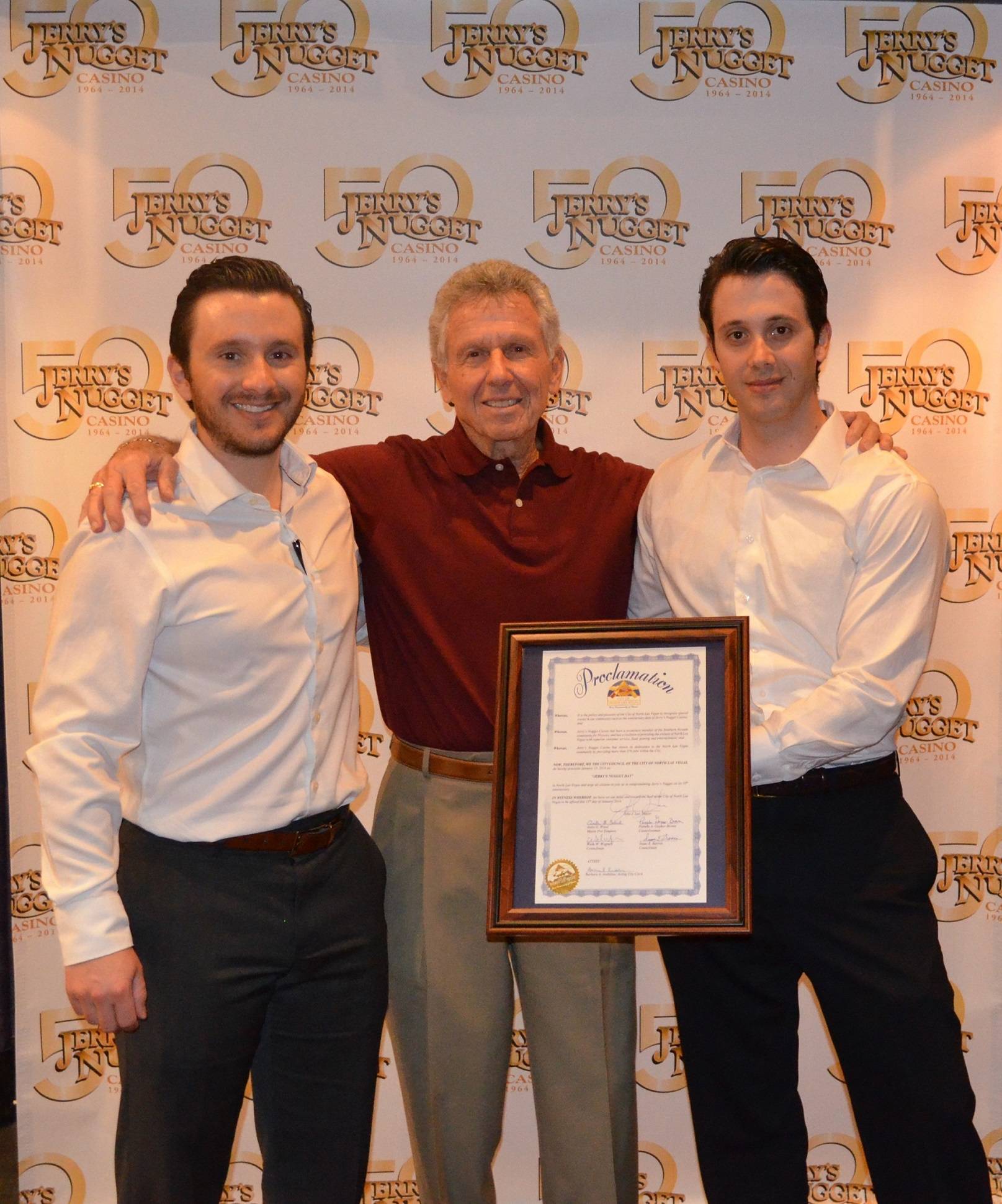 In celebration of the milestone 50th anniversary this year, North Las Vegas Mayor John J. Lee presented Jerry’s Nugget Casino with a “Jerry’s Nugget Day” proclamation on Wednesday. Celebrations took place on property, including free éclairs to the first 50 customers at the Jerry’s Nugget Coffee Shop, free bakery treats to players on the casino floor and bingo hall, 50 cent “Jerry’s Nugget celebratory punch” offered at the Main Bar, and slots and video poker promotions throughout the day.