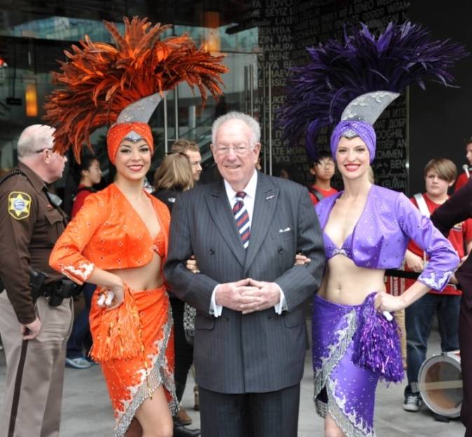 The festivities began at 10:45 a.m. with music on the plaza outside PBR Rock Bar & Grill. The rally kicked off just after 11 a.m. with a performance by the USA Sevens cheerleaders followed by opening remarks from Miracle Mile Shops general manager Jerry Irwin and a welcome toast by former Las Vegas Mayor Oscar Goodman. Next, tournament director for USA Sevens Rugby and executive vice president for United World Sports Dan Lyle took the stage to announce USA Eagles captain Nick Edwards. Edwards then introduced members of the USA Eagles as well as Ahman Green, retired professional football player who currently serves as rugby liaison. Following Edwards’ remarks, students from the Coronado High School Drum Line took to the stage to close out the rally with a high-energy performance.