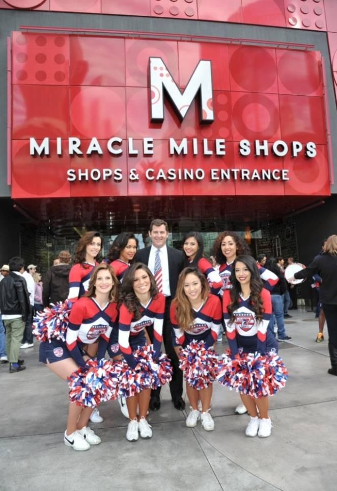 The Miracle Mile Shops held a pep rally on Wednesday for the USA Eagles, who are competing in the 2014 USA Sevens International Rugby Tournament Jan. 24-26 at Sam Boyd Stadium.