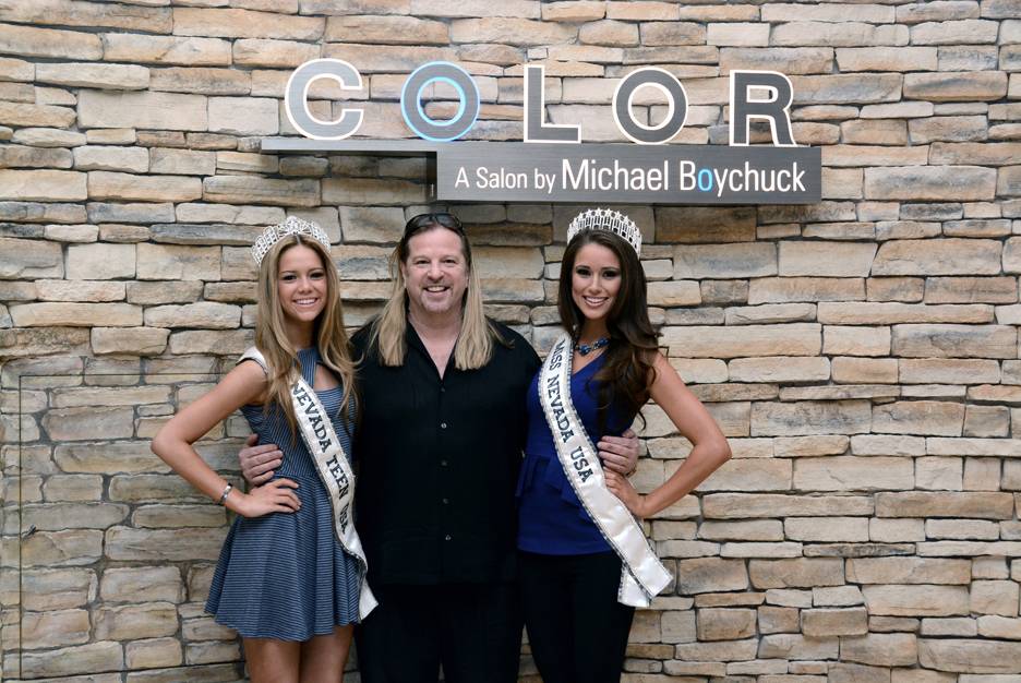 Newly crowned beauty queens Miss Nevada USA 2014 Nia Sanchez and Miss Nevada Teen USA 2014 Alexa Taylor enjoyed the royal treatment at the luxurious salon. Boychuck, the official hair sponsor of the Miss Nevada USA organization, treated the beauty queens to blow outs, manicures and pedicures. Executive director of the Miss Nevada USA organization Shanna Moakler and Miss Nevada USA 2013 Chelsea Caswell stopped by Color Salon to refresh their signature “Boychuck Blonde” manes.