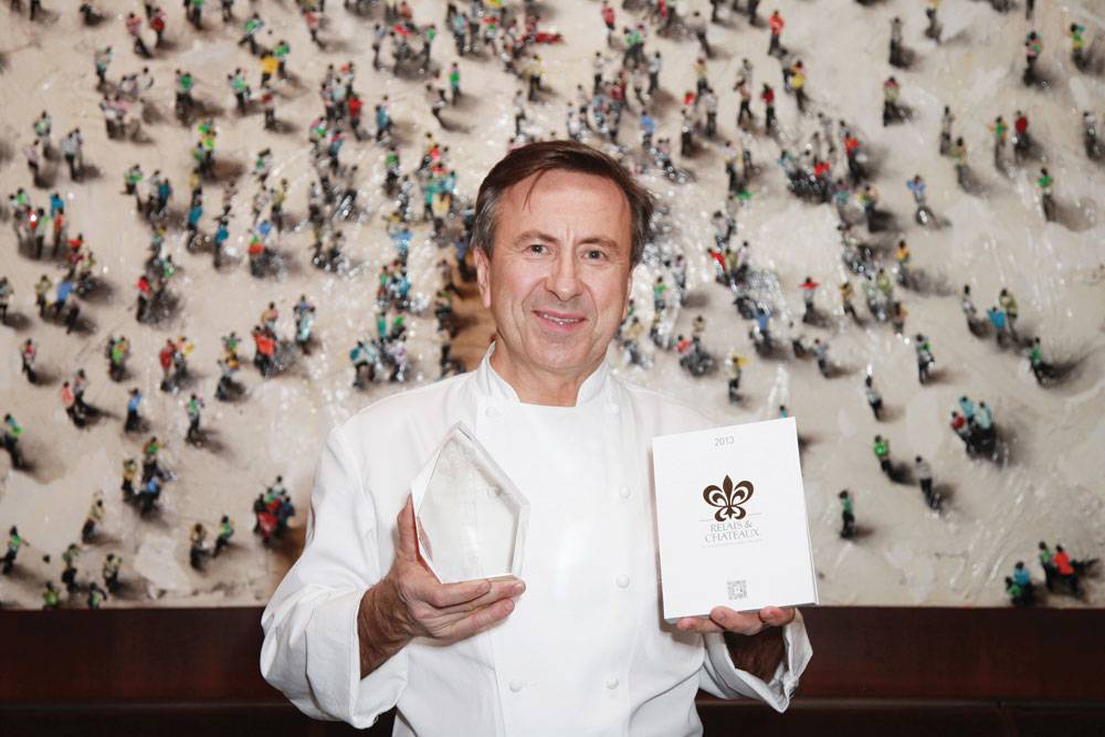 Relais & Châteaux members gathered at DANIEL to welcome newly elected International President, Philippe Gombert. After a four course lunch prepared by newly inducted grand chefs, Gombert awarded Grand Chef Daniel Boulud with the “Welcome Trophy” for his commitment to offer a unique gourmet dining experience. Boulud ensures that guests receive a warm welcome with a personal touch at his New York restaurant, Daniel, for an exceptional meal with lasting memories set in elegant and sophisticated surroundings.