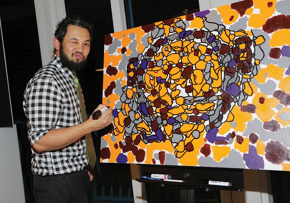 Omega hosted the launch party for the Dark Side of the Moon watch at a chic penthouse at the Continuum. Renowned artist Jayson Atienza entertained and intrigued guests as he performed a live painting during the event. Trey Smith (aka DJ AcE). Watches from the collection were beautifully displayed in sparkling illuminated cases throughout the party for guests to ogle. The watch of the night (and the event’s namesake) features a black zirconium oxide ceramic dial and case. Its name is engraved on the caseback, a tribute to the Speedy watch heritage—the timepiece that astronauts wore to the moon on six lunar missions.