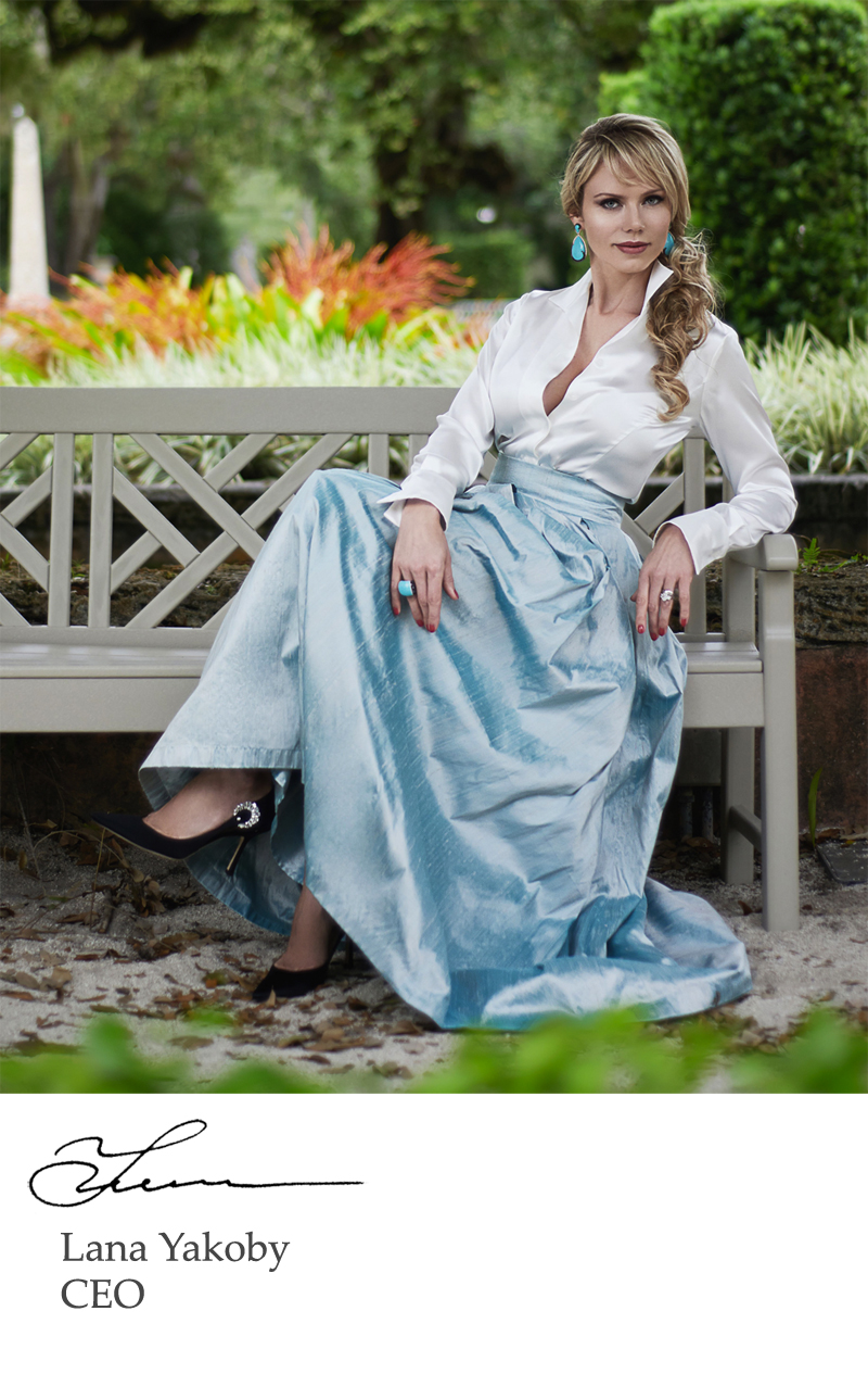 This being couture, Lana is sure to create pieces that are a perfect union of her own vision and her client’s wishes. But the best part is that – no matter how ornate the design- buyers don’t have to wait too long as the handmade pieces are sewn right here in South Florida insuring that delivery is speedy and quality is high. Sofia Sherry garments start at $3,000 and come with a sketch by Yakoby herself.