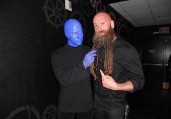 Musicians Chris Kael, drummer of Five Finger Death Punch, and Frank Sidoris, guitarist for Slash, were spotted enjoying the rocking rhythms of Blue Man Group inside Monte Carlo on Wednesday night. Following the show, the artists posed for pictures with the Blue Men during a private backstage meet-and-greet.