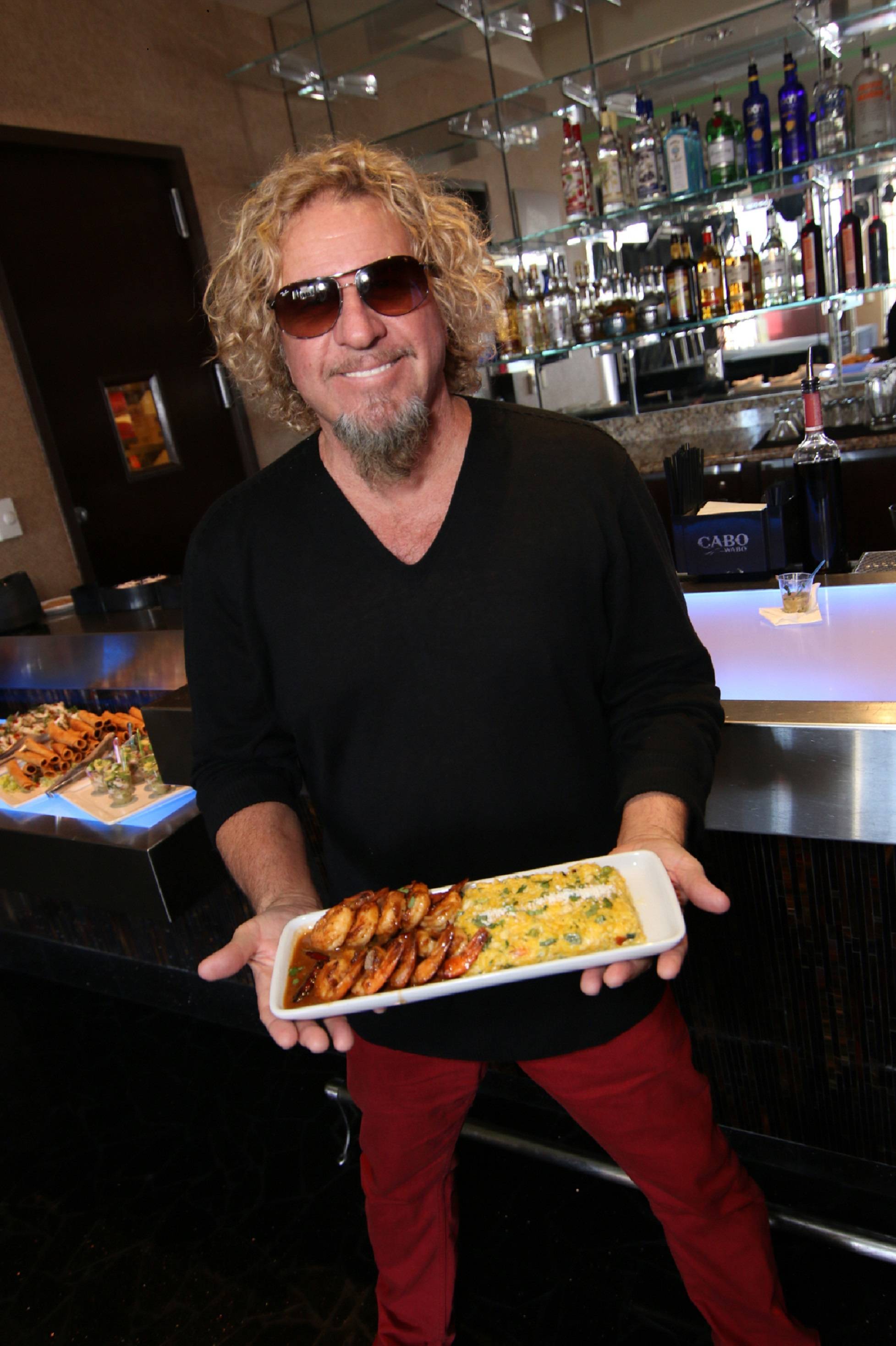 The Red Rocker was in town to support the Keep Memory Alive fundraiser to benefit Kerry Simon Says Fight MSA, and visited his favorite rockin’ dining and live music venue in Las Vegas before the benefit. Accompanied by his wife, Kari Karte, and business friends, Hagar and the group ordered appetizers and hand-crafted cocktails. The Red Rocker also enjoyed one of the restaurant’s newest menu items, Sammy’s tequila shrimp served with Mexican dirty rice. Hagar left Cabo Wabo to go to do his sound check for the fundraiser that evening where he performed with Slash on-stage.