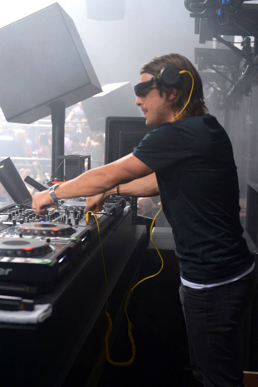 Deejay Axwell returned to Light Nightclub at Mandalay Bay on Wednesday night for another “Blow Out” Wednesday. The “I Am” artist touched down in Vegas via his private jet late Wednesday night and headed immediately to the nightclub. Wearing a simple white T-shirt, black jeans and a leather jacket, Axwell took over the decks at 12:45 a.m., kicking off his explosive set with “Starlight.” Throughout his set, he played a hit list of the hottest mixes that kept the entire club dancing all night.