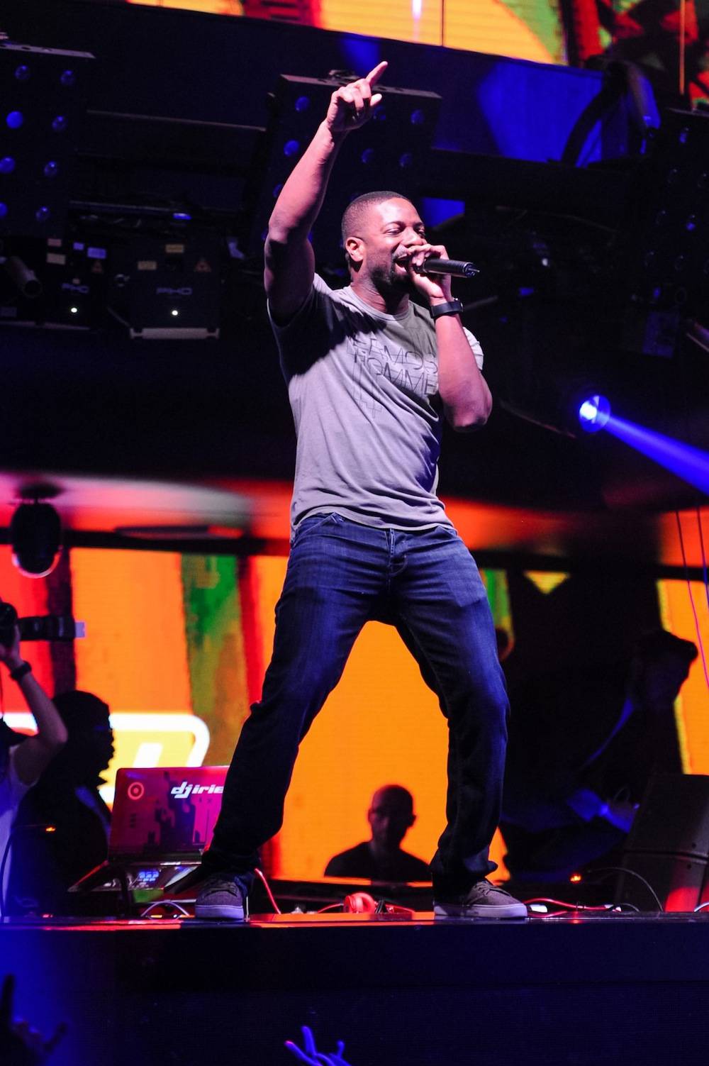 While seated in VIP, Ice Cube enjoyed a glass of champagne with his wife, Kimberly Woodruff, and prepared for his performance while taking in the sights and high energy of the crowd in the main room. Thousands of partygoers were bursting with excitement as DJ Vice got on the mic from behind the deejay booth to announce Ice Cube’s arrival and anticipated performance.