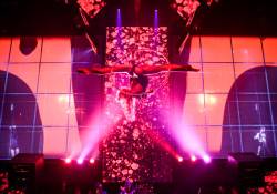 The group touched down in Vegas earlier in the day and was spotted dining at Kumi Japanese Restaurant before heading to Light for a sound check. Krewella later returned to the nightclub with their management team, and a couple of contest winners. They also brought a special guest to see their performance: their dad. The proud papa took in the show, while Krewella performed a phenomenal set of their hit songs including “Live For the Night” and “Enjoy the Ride.” Partygoers went wild for the always high-energy set as the Light’s Cirque artist dazzled the crowd with jaw-dropping acts and choreography.