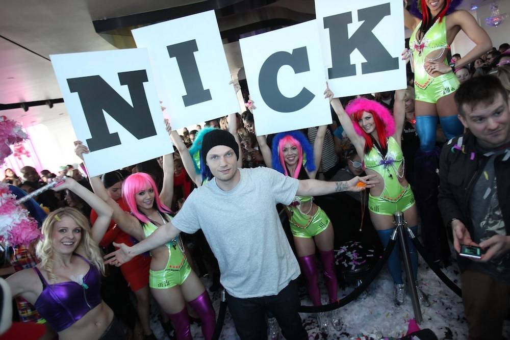 Backstreet Boys member Nick Carter celebrated his upcoming wedding to fiancée Lauren Kitt with a co-ed bachelor and bachelorette party alongside a group of 15 close friends at the Palms over the weekend.