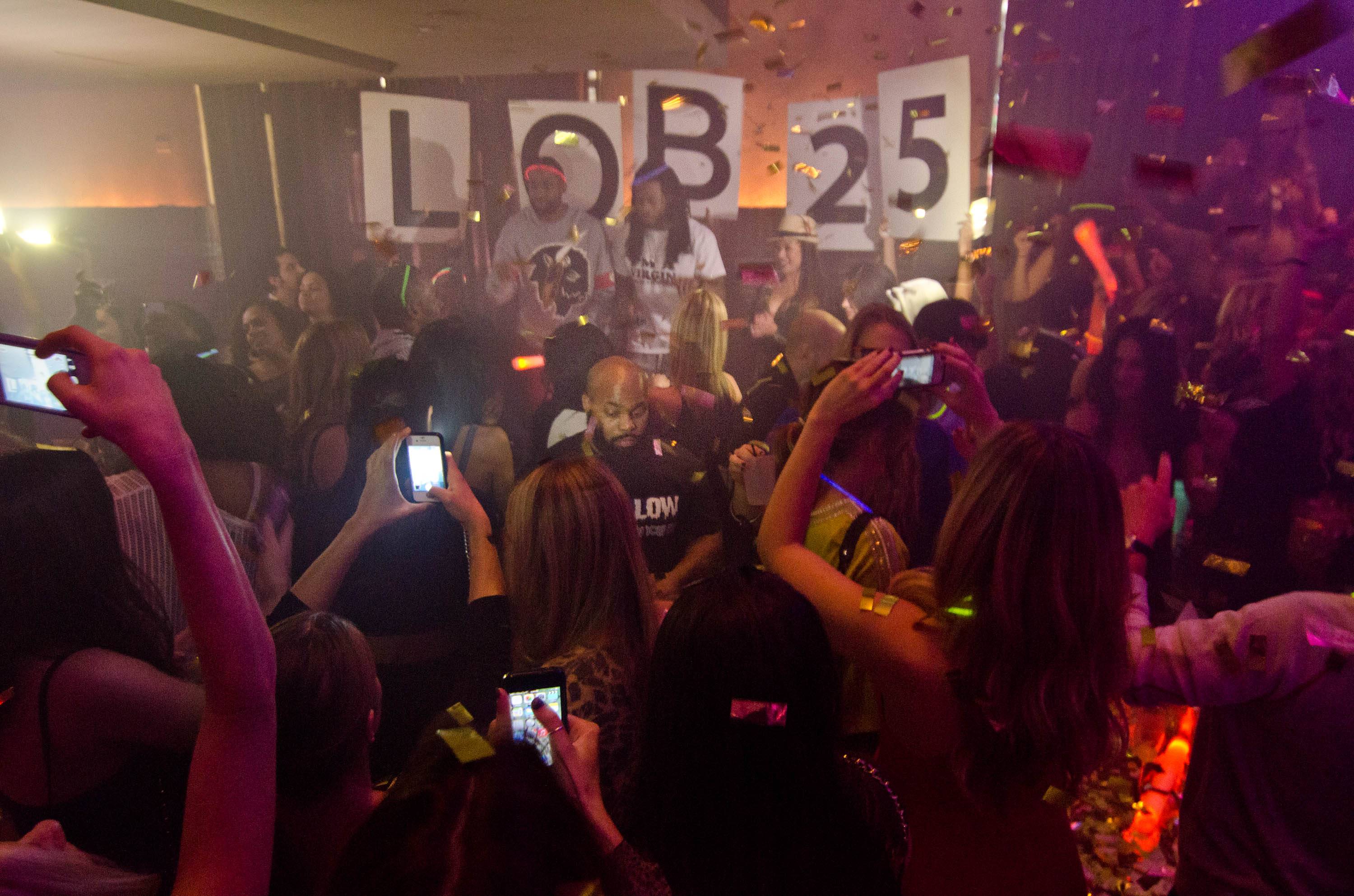 As the sounds of DJ Lema pumped throughout the space, Sherman and teammates danced on top of their table and were surprised by a special bottle presentation. “LOB 25,” standing for legion of boom and Sherman’s jersey number, followed by a line of cocktail waitresses with flashing lights paraded toward the group. A confetti explosion completed the moment as the entire room cheered and congratulated them on their recent win.