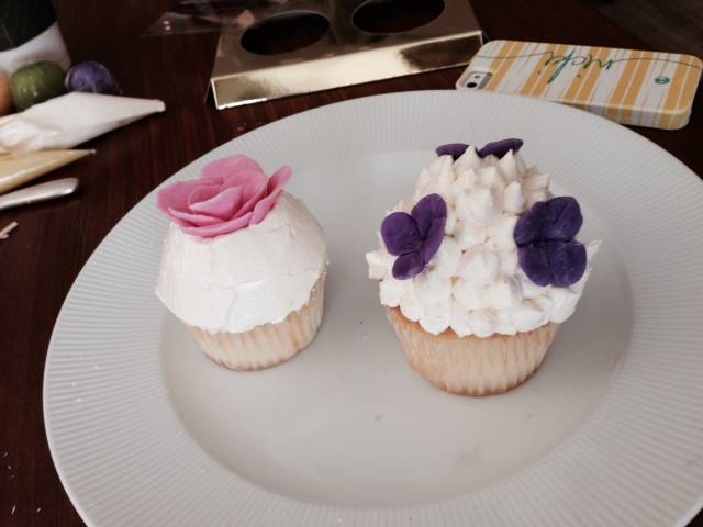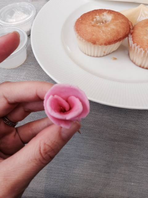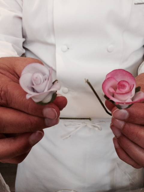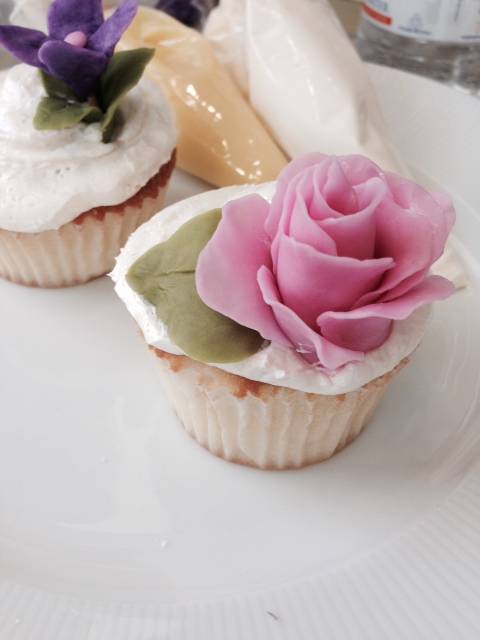 Each student was given two plain vanilla cupcakes, piping bags of Key Lime custard, vanilla buttercreme icing and four colors of gummy sugar dough and tools to try to render a flower as per Sylvia’s instructions. Real housewives, foodies and FIU students in the class were trying to make rose petals. Some did much better than others, but no one came close Syliva Weinstock’s realism that needs a process of rolling out, shaping, drying and painting taking place over five days.