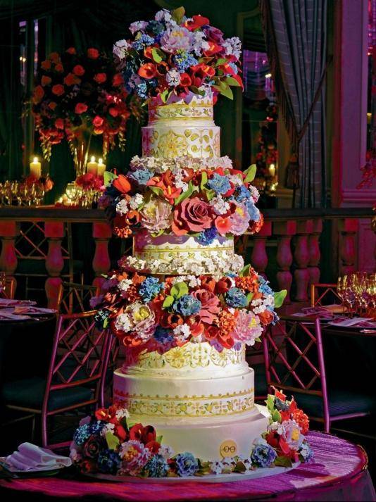 Sylvia is famous for sugar flowers that look so real, you’re almost scared to eat them. She’s also known for eschewing fondant, something she considers tasteless. Sure, she has a team of artisans that will make you one of the fondant creations so in vogue today, but why would you when you’re dealing with the only woman in the world who can cover a moist cake in totally realistic flowers? “First and foremost a cake has to taste good. It’s not just about the decorations,” says Weinstock from behind her famous glasses.