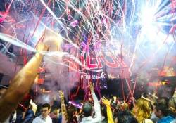 Then it was off to Light, where inside a special surprise awaited the birthday boy. As he arrived, Cirque du Soliel’s performers came down from the ceiling with a black Batman-themed cake topped with a mask, paying homage to Diablo’s new song “Black Mask” that amassed 100,000 clicks in one day. The cake was then given to another Cirque artist who walked the cake up to DJ booth to Diablo while the packed nightclub sang “Happy Birthday.” He then kicked off his set with the hottest electrics sounds including his new hit song “Black Mask” and an explosive remix of “California Love.” During his set partygoers went wild for his mix of “Royal” by Lorde and his smash hit “Starlight.”
