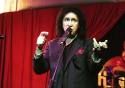 Rock and Roll Hall of Fame inductee Gene Simmons made an appearance inside Mandalay Bay’s Crossroads at House of Blues to introduce bands from the Gene Simmons Rock ‘n’ Roll Fantasy Camp on Saturday night. Known for his iconic black and white makeup and extravagant costumes, the KISS singer and bassist warmed the crowded venue with a few jokes. The audience erupted in applause when Simmons mentioned KISS will tour with fellow rock band Def Leppard this summer.