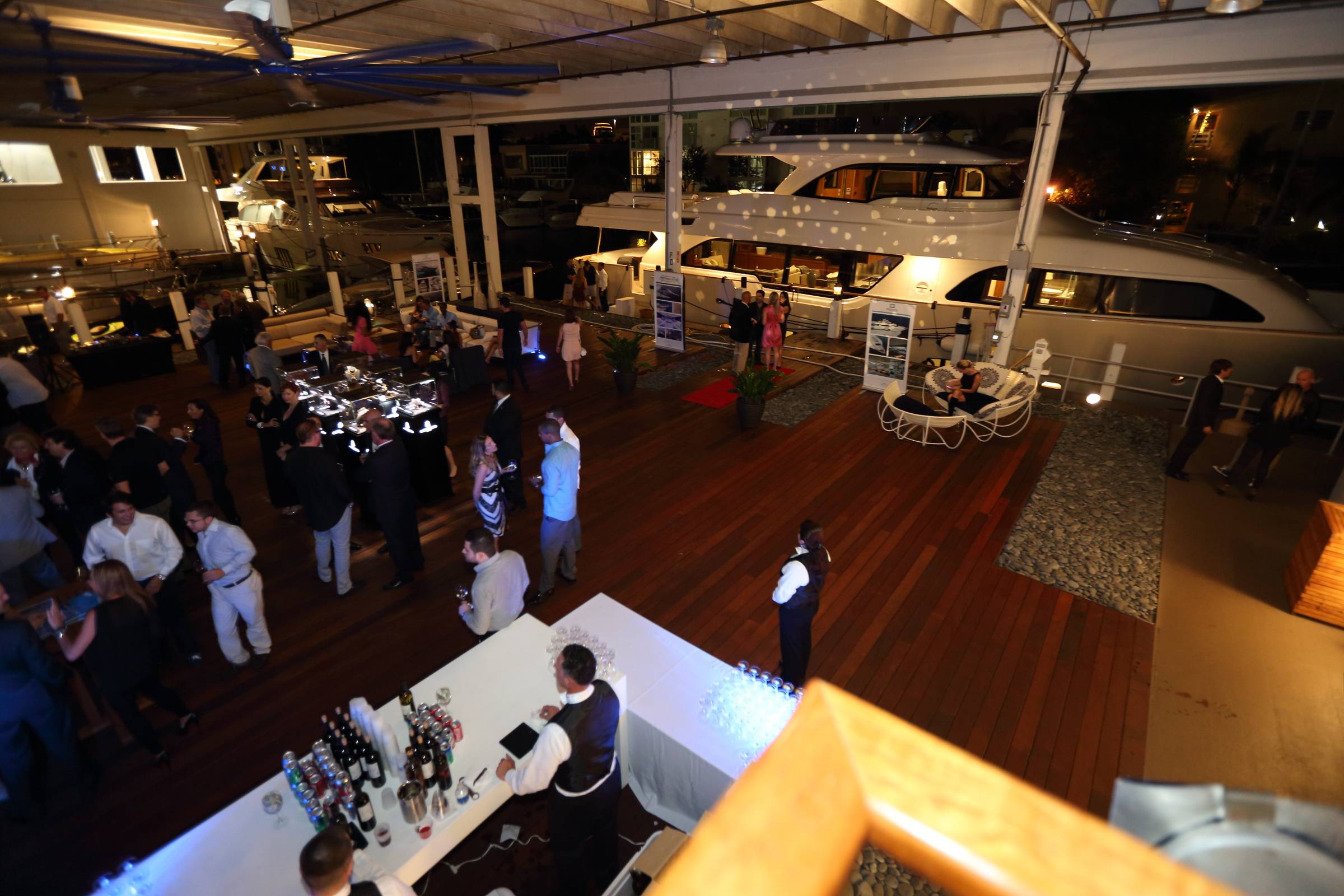 The star of the night was the Ferretti Navetta 26m Cresendo, which was docked front in center giving all those that attended a breath taking view of this truly magnificent yacht and featured a surprise performance of authentic Brazilian drummers to cap the night. Guests were allowed to preview all eight yachts on display for this evening including the Ferretti Navetta 26m Cresendo, Ferretti 870, Ferretti 690, Pershing 62, Pershing 74, and Rivarama 44’ and Riva Iseo.
