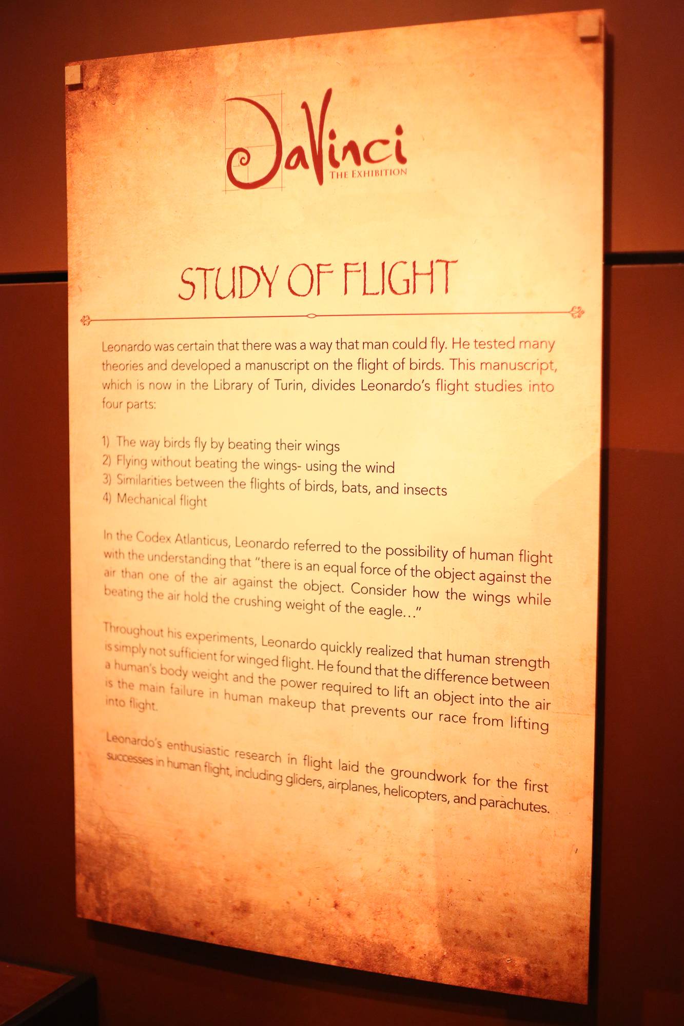 Throughout the exhibition’s six themed galleries, visitors will discover the breadth and scope of da Vinci’s incredibly advanced understanding of science, mathematics, nature, and the relationship between the three. The artist’s intricate designs and extraordinary early concepts are spotlighted, including his ideas for the helicopter, military tank, SCUBA, crane, clock, submarine, hang glider and plan for a modern city. Additionally, various multimedia and documentary presentations throughout the experience provide a multitude of supplementary information on da Vinci’s discoveries and creative process.