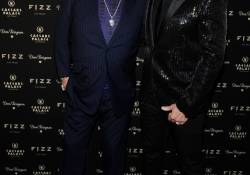 Fizz Las Vegas at Caesars Palace held its official grand opening and celebrate Sir Elton John’s birthday on Friday night. Elton’s partner David Furnish is the creative director for the lounge. Guests sang “Happy Birthday” to Elton as a three-tiered birthday cake was delivered.