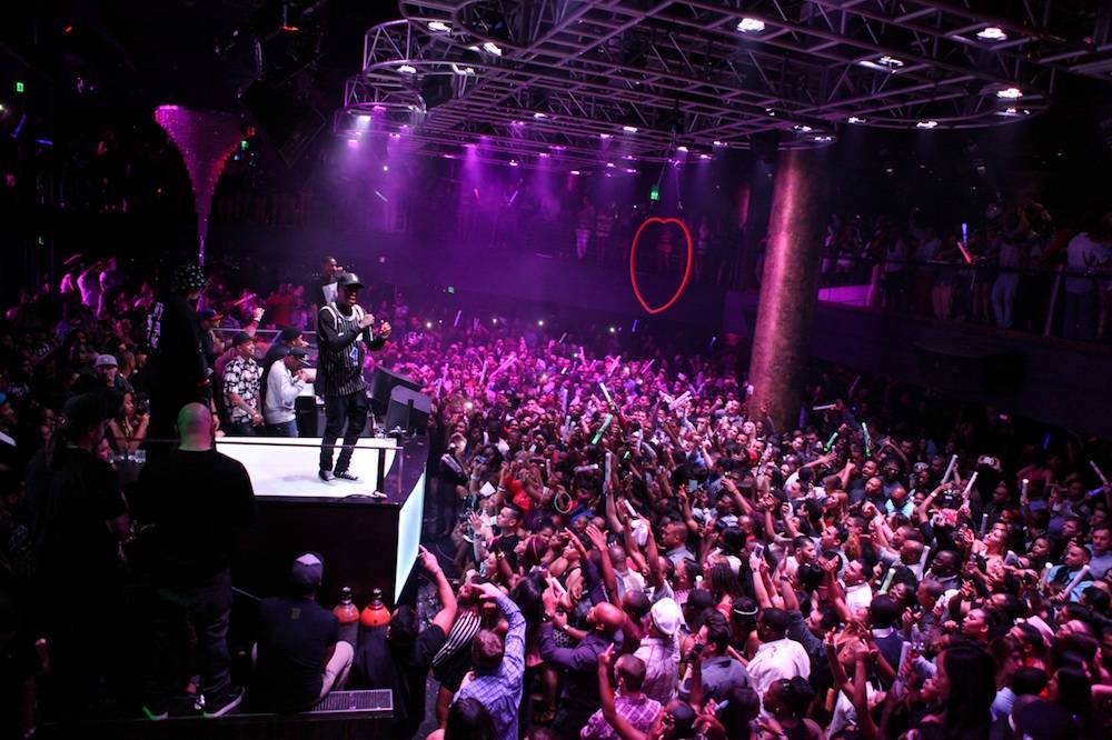 Inside, YG and friends were escorted to two VIP tables behind the deejay booth, where they took in the scene before his big performance. Then at 1:30 a.m., YG’s friend and super producer, DJ Mustard (of “Rack City,” “Paranoid” and “Show Me” fame) jumped in the booth and took over the ones and twos to hype up the at-capacity crowd.