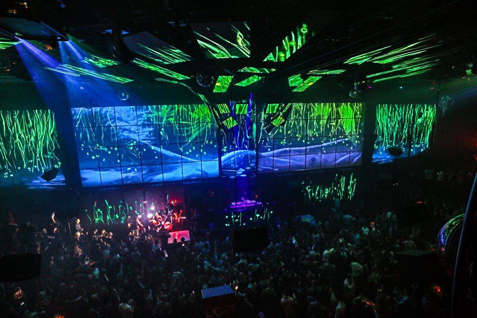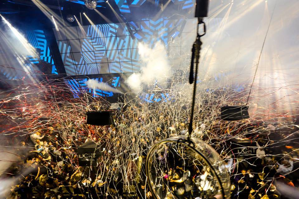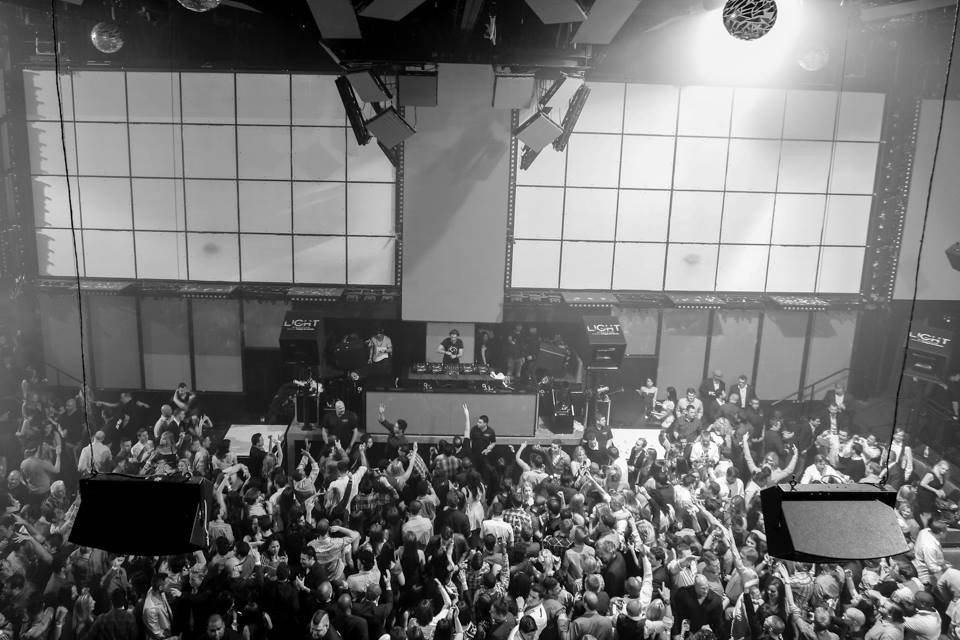 After fueling up on his favorites, it was off to Light, where an at-capacity crowd awaited him. Wearing a black tee, he took over the decks at 12:15 a.m., and kicked off his set with the smash hit “Eat.Sleep.Rave.Repeat,” that sent partygoers into a dancing frenzy. Throughout his set, he played a mix of the hottest dance and electric sounds while LIGHT’s Cirque du Soleil artist performed choreography above the packed dance floor.