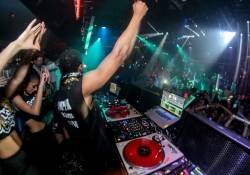 He then was escorted inside to the deejay booth, where he immediately hopped on the ones and twos. In the booth he was also joined by a few of his “Wild N Out” Girls. Excited partygoers cheered for him and danced throughout his entire set as he played a mashup of popular dance and electric tracks as well as new and old Hip-hop favorites. He also paid tribute to fellow SKAM artist and deejay Lil Jon, who was there enjoying his set. Fans were also treated to an impromptu performance of Cannon’s latest song “Pajama Pants” off his new album. After his set, Cannon and his entourage headed out, stopping along the way to talk to fans again and take more pics.
