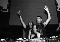 Then, it was off to dinner at Kumi Japanese Restaurant & Bar, where they dined with a group of friends. After dinner, they headed to Light where a packed house awaited them. At 1 a.m., the duo hopped in the deejay booth for the first time, dominating the decks and the night with the hottest house, dance and electric tracks. During their set, they kept partygoers dancing all night with the monster remixes they are known for, while Light’s alluring Cirque du Soleil performers dazzled guests with daring choreography above the dance floor.