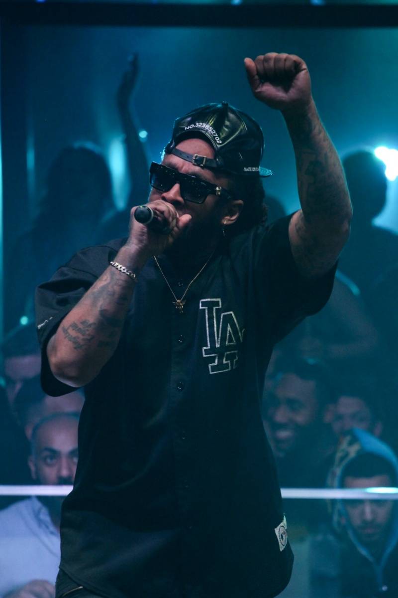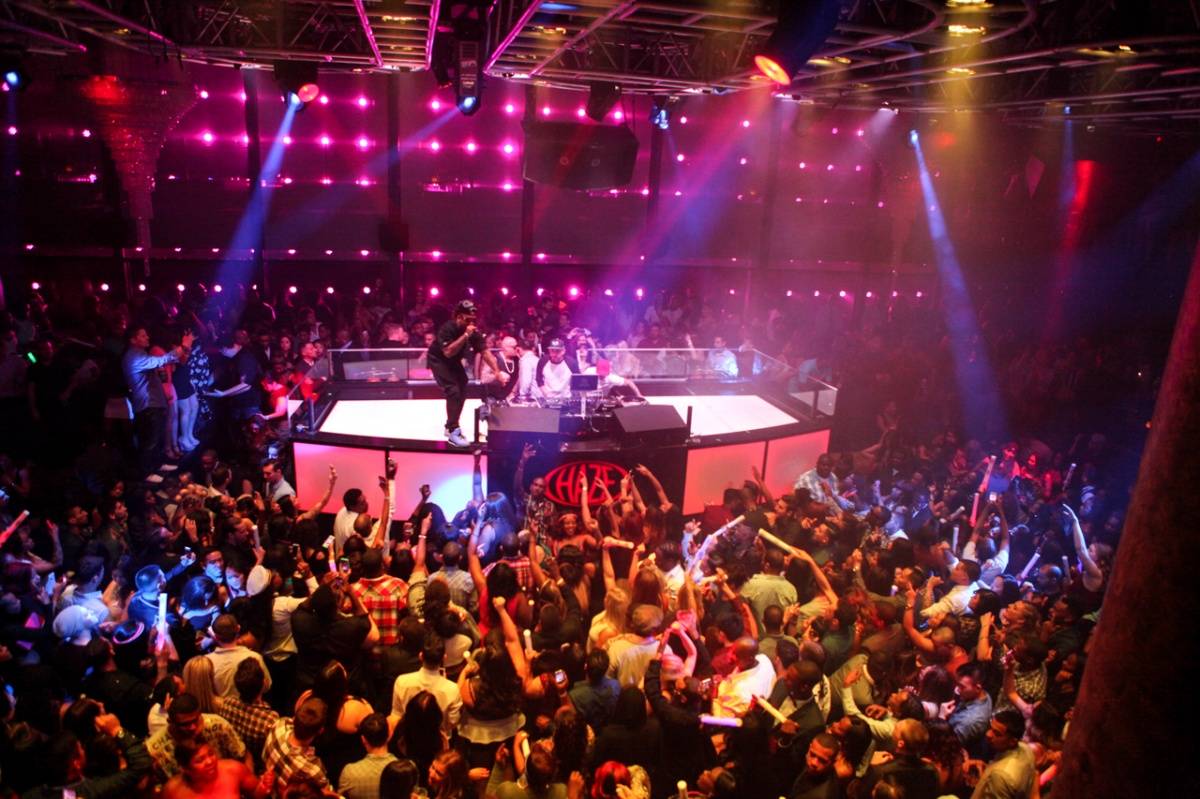 Later, Ty and his entourage including deejay Dre Sinatra and fellow lyricist Mally Mall hit the Haz red carpet at 1 a.m. before heading to a VIP table inside the packed nightclub. Pre-show, the group celebrated with Grey Goose and Hennessey shots while taking in the club scene. DJ Dre Sinatra then took over the Haze ones and twos to hype of the crowd.