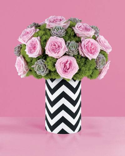 The bouquets feature original, designer vases, tight, unique arrangements with a style that is sure to be readily identifiable once the city’s “ladies who flower” get the chance to send and receive. Another identifiable factor? The big beautiful box they come in which can readily include gourmet chocolates and vintage wines.