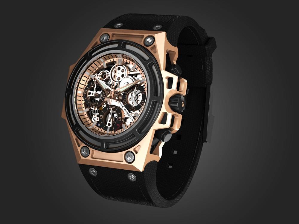 This 44mm x 46mm x 15mm timepiece features a 5N rose gold case with a black ceramic bezel and a titanium crown with DLC coating. The openworked 3D dial features hours and minutes, a central chronograph hand, and sub-dials for hours, minutes and seconds. Only 99 numbered pieces of the SpidoSpeed Rosegold Black will be produced, and it will retail for CHF 32,000 (approximately US$36,125).