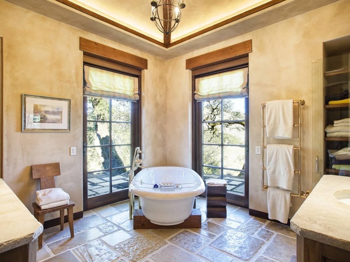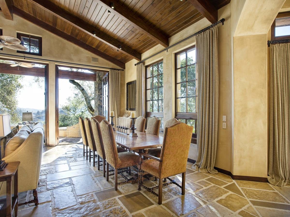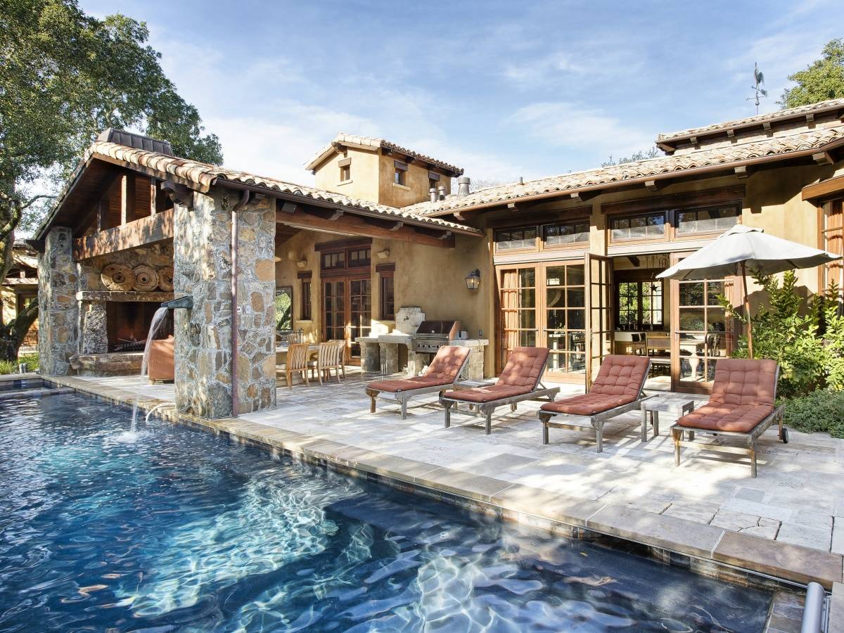 Inspired by the environment, this preeminent Mayacama Golf estate home features all the amenities of resort living. The sophisticated design is a collaborative infusion of European Old World detailing and modern design elements. Rich textures and organic elements, soft hues, curved walls, stone pavers and distressed beams blend harmoniously to create a welcoming environment known as “OldStone.” An impressive stone entry tower anchors the heart of the home and a Great Room connects the vibrant living areas with the master bedroom suite, executive library and second bedroom. Two additional bedrooms, billiard lounge and wine cellar are located in a separate guest house. A massive stone fireplace embraces the exterior lounging terrace overlooking the 50′ lap pool. Watch the sunset over the renowned Jack Nicklaus Signature course and the impressive Mayacama Clubhouse. The residents of this community are attracted by the natural beauty, wine and golf amenities and lasting friendships.