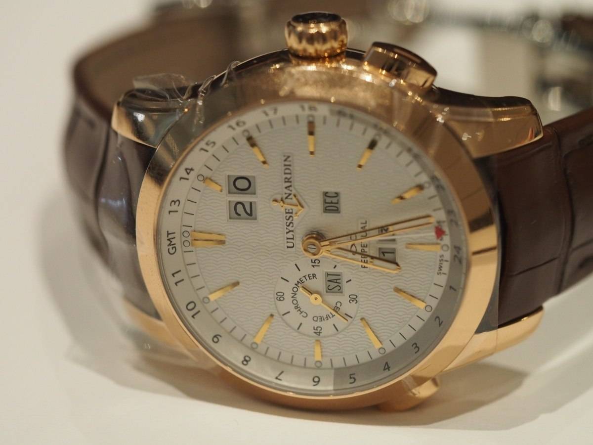 The Perpetual Manufacture, with in-house Caliber UN-32, also allows the date to be adjusted both forward and backward. It also features a second time zone, indicated with a very subtle red GMT hand.