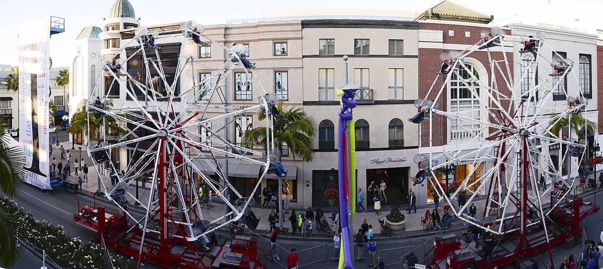 The BH100 Centennial Block Party on Rodeo Drive spanned the 200, 300, and 400 blocks of Rodeo Drive and was an unprecedented birthday bash for the city, featuring a 15,000 slice birthday cake; a TASTE of Beverly Hills festival with some of the city’s legendary restaurants; carnival rides and games, including two four-story Ferris Wheels that spelled out 1-0-0; a 20-piece dance band and a fireworks grand finale celebrating the city’s independence.