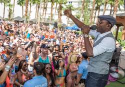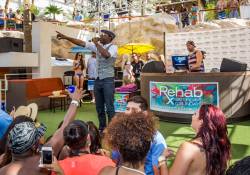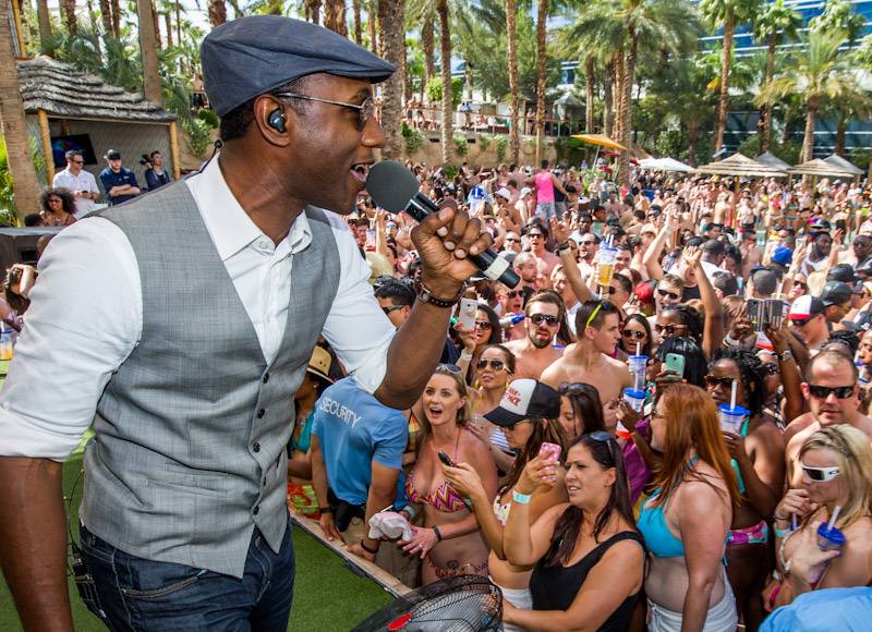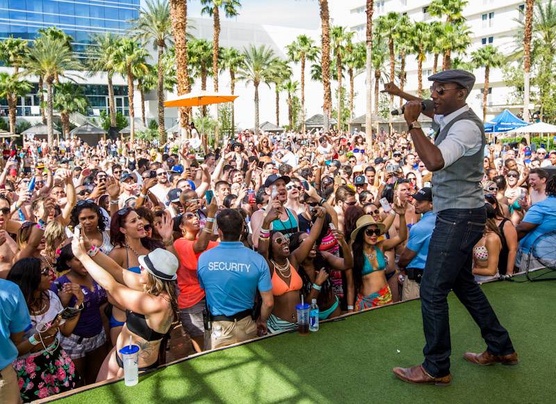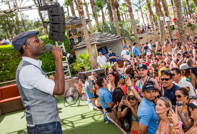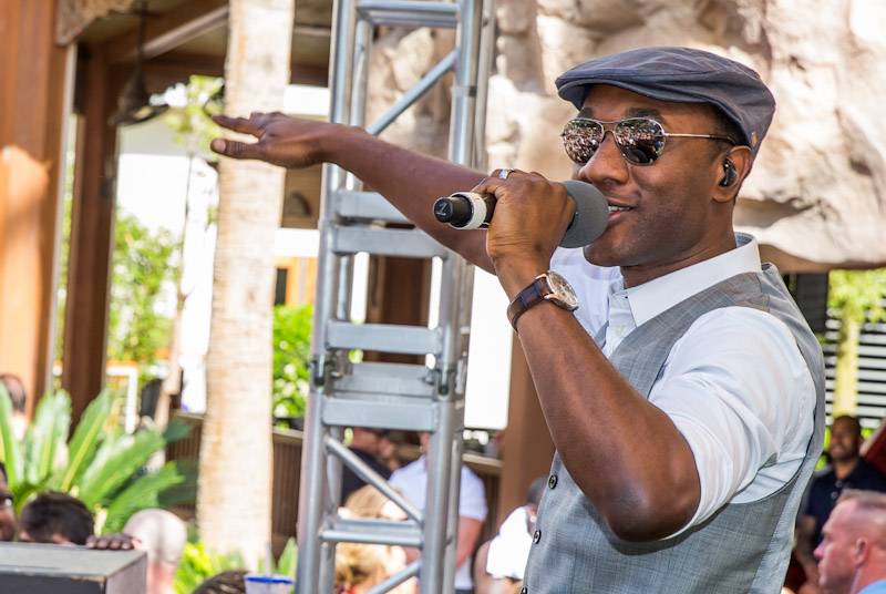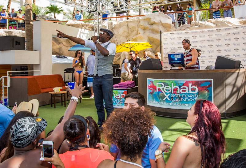 Breakout star Aloe Blacc performed at Rehab at the Hard Rock Hotel on Saturday afternoon. Blacc, known for his top-charting songs “Wake Me Up” and “The Man,” took the poolside stage to perform some of his hits at the dayclub’s newest addition, Rehab Saturdays.