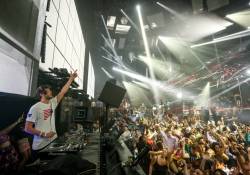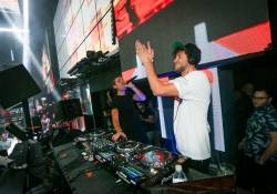 Light Nightclub at Mandalay Bay welcomed back deejay Baauer for another bass quaking set. The “Harlem Shake” artist arrived in Vegas earlier in the day and stopped by the nightclub for a sound check before his big night. Baauer then headed to Kumi Japanese Restaurant & Bar. Clad in black Nikes, jeans, a black ball cap and a T-shirt with the American flag emblazoned on it, Baauer returned to Light where an at-capacity crowd awaited him. He then jumped in the DJ booth and kicked off his set with the bass-intensive beats he is known for. Throughout the night Baauer destroyed the decks playing hit after hit and explosive remixes that kept partygoers dancing and their hands in the air. Guest were also treated to jaw-dropping performances by Light’s Cirque du Soleil artists who demonstrated daring choreography above the dance floor.