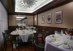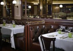 The spacious restaurant seats 280 diners, including two private dining rooms, as well as a casual bar and lounge. Designed by Jeffrey Beers International (JBI), the group took inspiration from classic brasseries in France to create a welcoming and convivial atmosphere. The exterior façade of DB Brasserie has been clad in travertine limestone panels, a reference to the public buildings that house some of France’s classic brasseries from past centuries. The restaurant’s centerpiece is an expansive faux-skylight reminiscent of those in classic Beaux-Arts train stations and restaurants. The design elements extend throughout the bar and lounge, as well as the private dining areas.