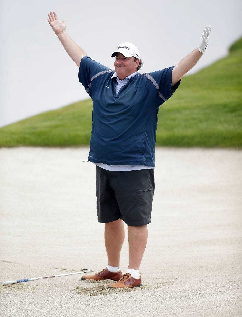 After a player in his group shot a ball near some spectators, Brian Baumgartner, star of “The Office” told the ladies closest they could pick it up. “You don’t want it?” they asked. “If we need that ball we’re in big trouble,” he quipped. The crowd roared with laughter. He later hit the ball out of the sand trap at the 18th hole so hard that it almost sailed into the grand stand. The ball hit the rail and rolled onto the green. He got a sarcastic standing O before walking up to the crowd to apologize.