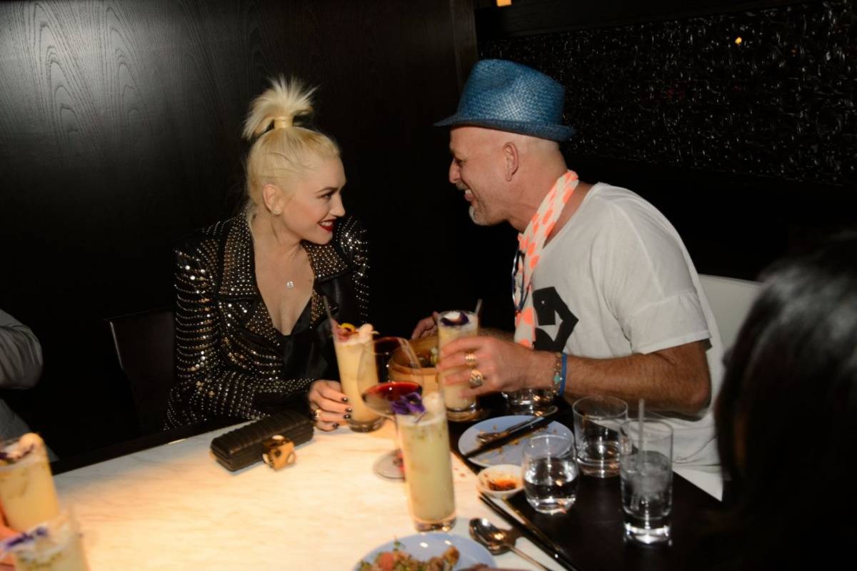 The night began as the proud new parents were spotted dining at Hakkasan with family and friends including Stefani’s brother, Todd Stefani and his wife Jennifer, along with longtime friend and well-known hairstylist Danilo. Arriving just after 10 p.m., the beautiful new mom and known fashion icon was dressed to perfection wearing a black leather studded ALC jacket, blue suede L.A.M.B pumps and a Kelly Wearstler clutch, ordered a number of Hakkasan signature dishes.