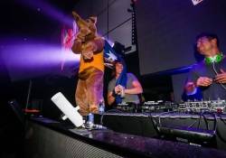During their fun-filled set they also unleashed a few of their friends from their homeland—inflatable kangaroos—while a life-size kangaroo mascot danced around the club and on the decks. Additionally, guests were treated to breathtaking performances by the nightclub’s Cirque du Soleil artists who demonstrated daring choreography above the dance floor.