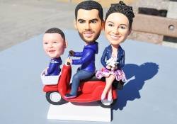 1) The bobblehead piece is one of about twenty that we had made as surprise Christmas presents for our extended family. The scooter is based on an actual scooter that we had back in Switzerland. It was an interesting process getting the bobbles made, especially the one of my daughter, since she was still a baby and her looks changed almost daily. My family means the world to me and, while the format is a little silly, I treasure it as a symbol of our lives together.